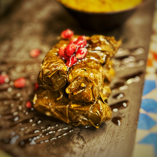 DolmehTender vine leaves stuffed with a fragrant mix of rice and herbs, slowly cooked to perfection for a burst of Mediterranean flavor in every bite. A classic and healthy dish. Vegan & Gluten-Free.