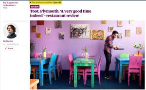 We take great pride in our positive review from renowned food critic Jay Rayner, a testament to the passion and dedication we put into our cooking. (https://www.theguardian.com/food/2023/may/07/toot-plymouth-restaurant-review-jay-rayner )